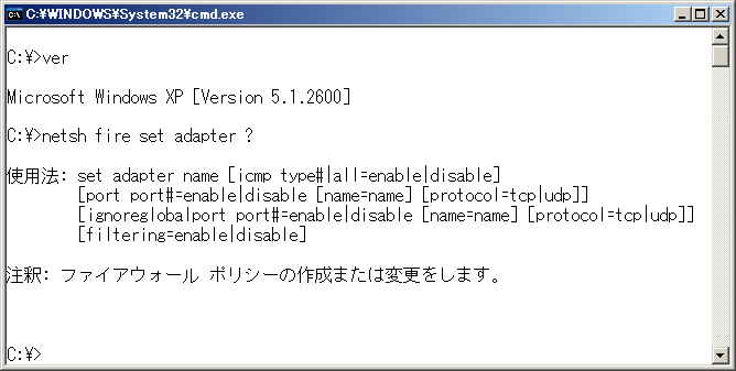 Windows XpのIPv6でpingが失敗するときは…firewall設定Windows Updateとservice Pack2003年の7月に脆弱性としてMicrosoftが発表していたにもかかわらず、一ヵ月後の8月にMSBlasterが大発生した。このことを教訓としてMicrosoftはデフォルトセキュアーの一環で、FirewallをデフォルトONに設定した。Windows Updateをまめに適用していても、filtering設定だけでなく ICMP設定がデフォルトでかかるようになった。Windows Xpを2004年04月14日現在の最新状態にすると、次のコマンドを実行して設定変更しないとpingが失敗する。
