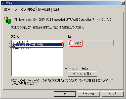 OSの機能を利用してPCに実装したネットワークインターフェースアダプタでVALNタグを有効にする。