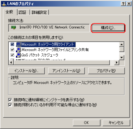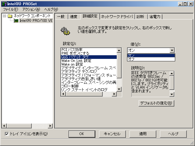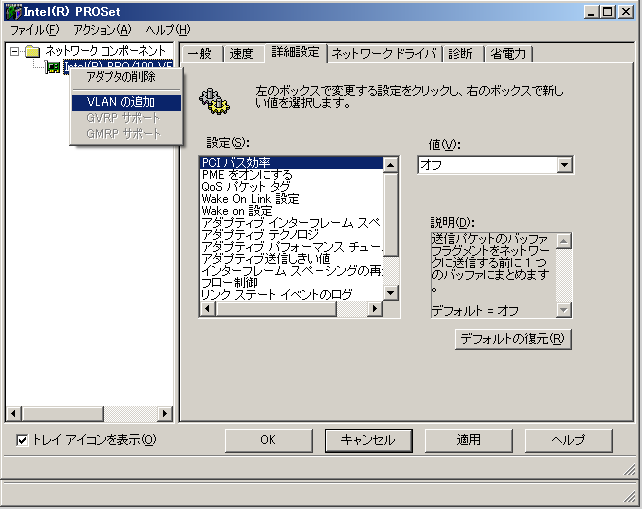 Intel PROアダプタシリーズに添付してある設定アプリを利用する