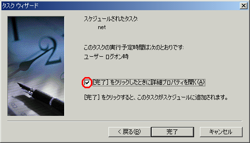「スケジュールされたタスクを追加」を起動する。