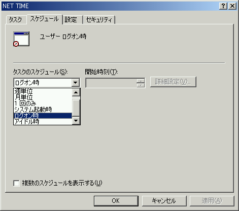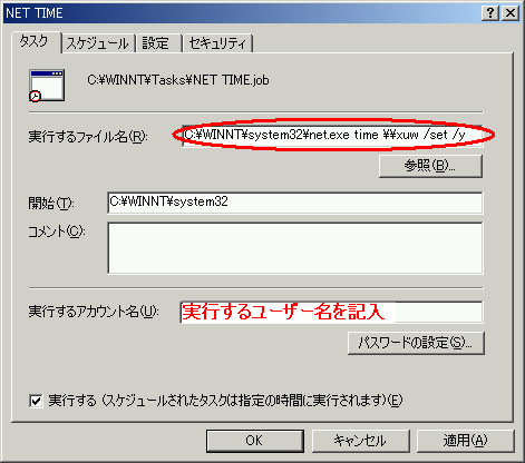 タスクを利用してネットワーク上の基準コンピュータとの時刻同期を自動化する