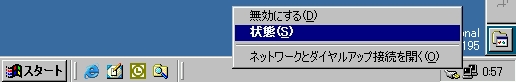 「タスクバー」のアイコンから「ネットワークの状態」ダイアログボックスを経由して、