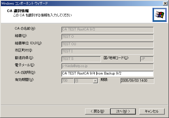 以前のCAのバックアップを利用した新規スタンドアロン・ルートCAのインストール