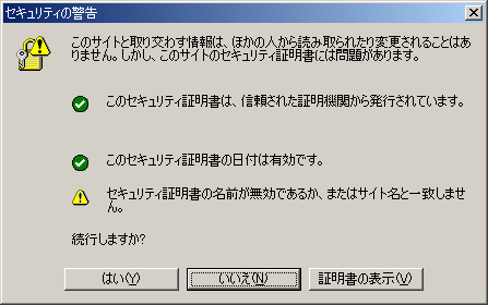 • 別なマシンで利用できます。但し、ホスト名が以前と異なる・IPアドレスで接続する・別名で接続するなどをすると、SSLで保護されたページを見るときにセキュリティの警告が表示されます。