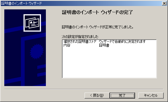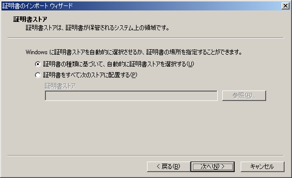 [証明書の種類に基づいて、自動的に証明書ストアを選択する] をクリックし、[次へ] をクリックします。
