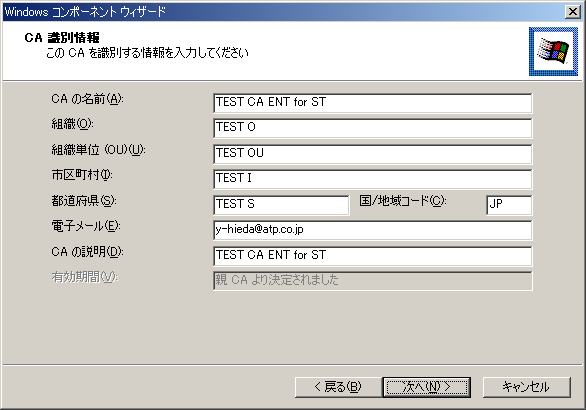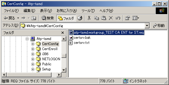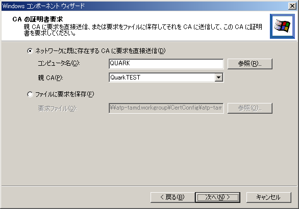 スタンドアロン・ルートCAを親とするエンタープライズ下位CAのインストール