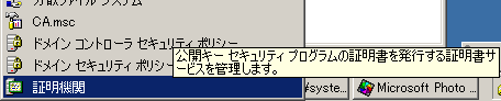 2. スタートメニューの[管理ツール]から[証明機関]を起動します。