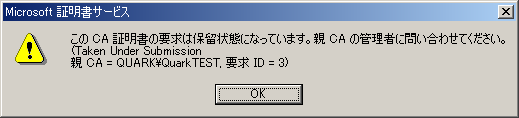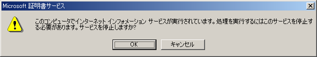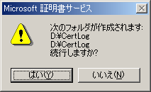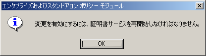 14. [Microsoft証明書サービス]メッセージは[OK]をクリックします。