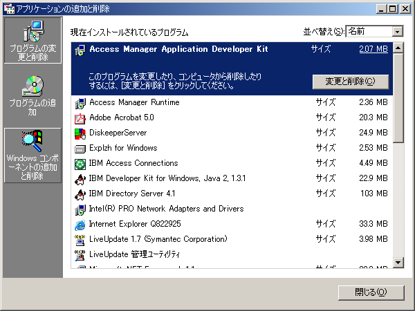 1. [アプリケーションの追加と削除]を起動します。