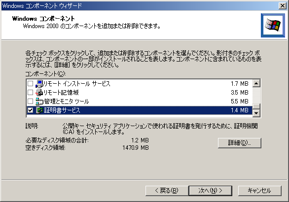 4. [証明書サービス]にチェックを入れます。