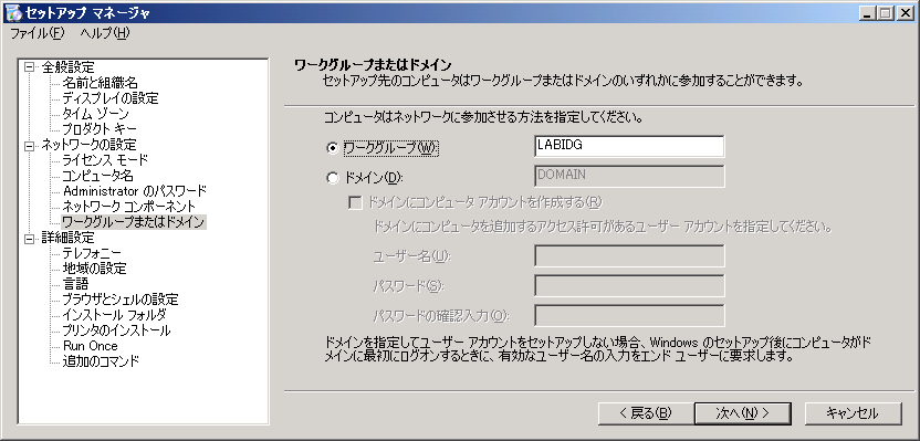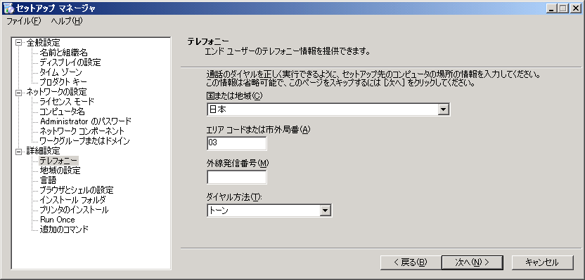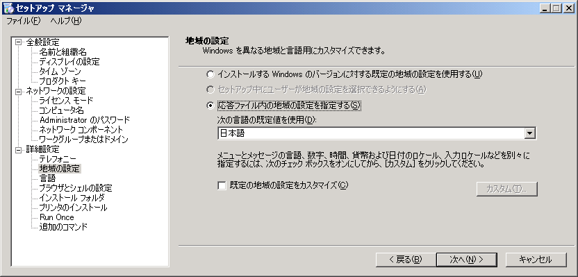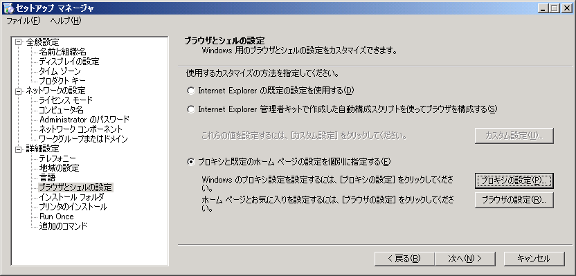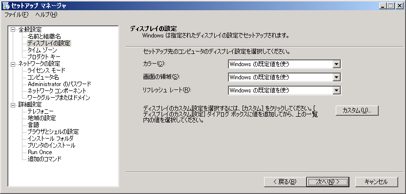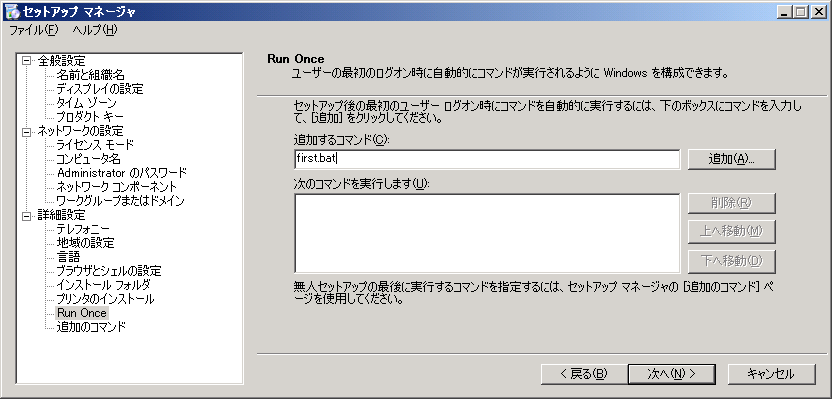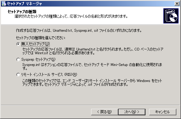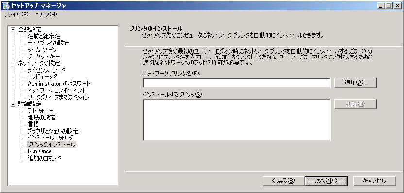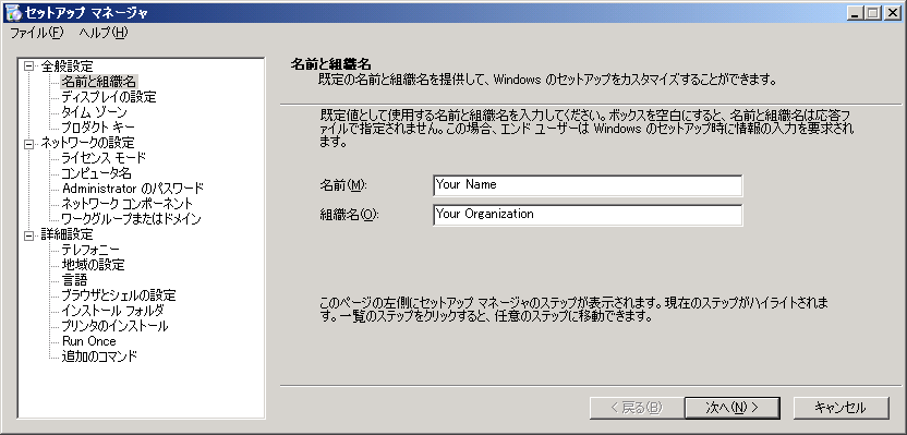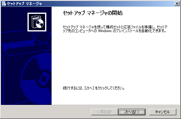 setupmgr.exeを起動するとウィザードが開始される。次へをクリック。