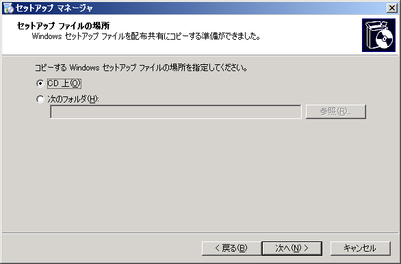 初めてのときはCD-ROMを選択するが、ネットワーク上やローカルハードドライブ上にCD-ROMのイメージコピーが既にある場合、それを利用できる。ここで勘違いしやすいのが、既にあるローカルハードドライブ上にCD-ROMのイメージコピーを配布共有したい場合だ。己自身から己自身へのコピーはできないので、当然エラーする。この場合の手順は別途説明する。