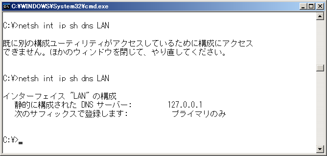 • netsh interface ip set dns intfacename static 127.0.0.1コマンド