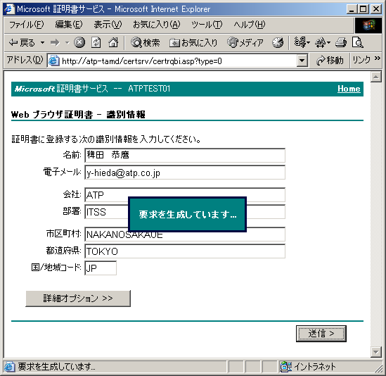 クライアント証明書を要求するには、以下の手順を実行します。