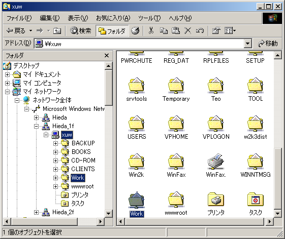 E:\workを共有しておく。そして、ネットワーク越しにアクセスする。