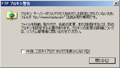 フォルダ ftp://<天災サーバ>/ は読み取り専用です。