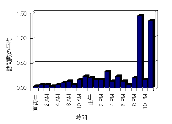 要求数と訪問数の平均と、訪問あたりの要求数の平均を時刻ごとに示します。
