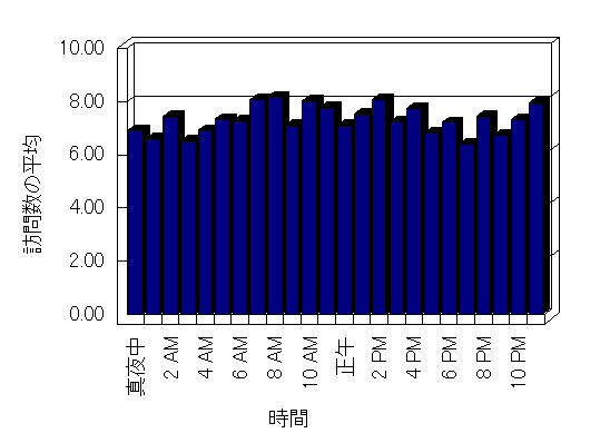 要求数と訪問数の平均と、訪問あたりの要求数の平均を時刻ごとに示します。