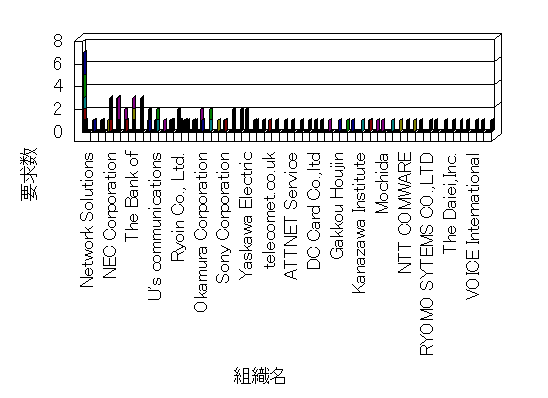 組織ユーザーにインターネット接続を提供する、商用または非営利団体、学術・行政機関などの、インターネット ドメイン で識別される団体や組織です。Microsoft Site Server Analysis は同じ組織に登録されたすべてのドメインを 1 つの組織としてグループ化します。ドメインがデータベースで使用できない場合は、1 つのインターネット ドメインが 1 つの組織を識別するのに使用されます。