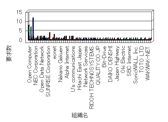 組織ユーザーにインターネット接続を提供する、商用または非営利団体、学術・行政機関などの、インターネット ドメイン で識別される団体や組織です。Microsoft Site Server Analysis は同じ組織に登録されたすべてのドメインを 1 つの組織としてグループ化します。ドメインがデータベースで使用できない場合は、1 つのインターネット ドメインが 1 つの組織を識別するのに使用されます。