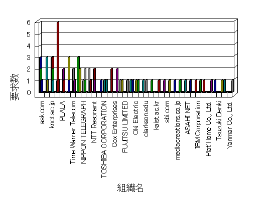 組織ユーザーにインターネット接続を提供する、商用または非営利団体、学術・行政機関などの、インターネット ドメイン で識別される団体や組織です。Microsoft Site Server Analysis は同じ組織に登録されたすべてのドメインを 1 つの組織としてグループ化します。ドメインがデータベースで使用できない場合は、1 つのインターネット ドメインが 1 つの組織を識別するのに使用されます。