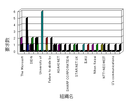 組織ユーザーにインターネット接続を提供する、商用または非営利団体、学術・行政機関などの、インターネット ドメイン で識別される団体や組織です。Microsoft Site Server Analysis は同じ組織に登録されたすべてのドメインを 1 つの組織としてグループ化します。ドメインがデータベースで使用できない場合は、1 つのインターネット ドメインが 1 つの組織を識別するのに使用されます。