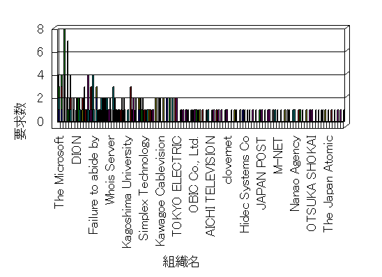 組織ユーザーにインターネット接続を提供する、商用または非営利団体、学術・行政機関などの、インターネット ドメイン で識別される団体や組織です。Microsoft Site Server Analysis は同じ組織に登録されたすべてのドメインを 1 つの組織としてグループ化します。ドメインがデータベースで使用できない場合は、1 つのインターネット ドメインが 1 つの組織を識別するのに使用されます。