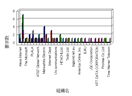 組織ユーザーにインターネット接続を提供する、商用または非営利団体、学術・行政機関などの、インターネット ドメイン で識別される団体や組織です。Microsoft Site Server Analysis は同じ組織に登録されたすべてのドメインを 1 つの組織としてグループ化します。ドメインがデータベースで使用できない場合は、1 つのインターネット ドメインが 1 つの組織を識別するのに使用されます。