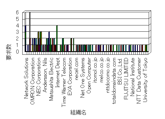 組織ユーザーにインターネット接続を提供する、商用または非営利団体、学術・行政機関などの、インターネット ドメイン で識別される団体や組織です。Microsoft Site Server Analysis は同じ組織に登録されたすべてのドメインを 1 つの組織としてグループ化します。ドメインがデータベースで使用できない場合は、1 つのインターネット ドメインが 1 つの組織を識別するのに使用されます。