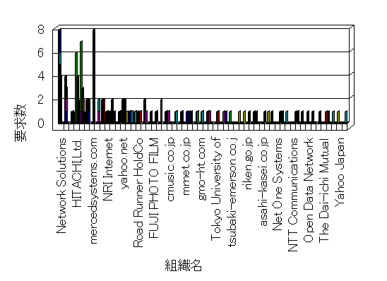 組織ユーザーにインターネット接続を提供する、商用または非営利団体、学術・行政機関などの、インターネット ドメイン で識別される団体や組織です。Microsoft Site Server Analysis は同じ組織に登録されたすべてのドメインを 1 つの組織としてグループ化します。ドメインがデータベースで使用できない場合は、1 つのインターネット ドメインが 1 つの組織を識別するのに使用されます。