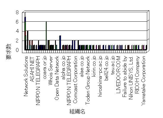 組織ユーザーにインターネット接続を提供する、商用または非営利団体、学術・行政機関などの、インターネット ドメイン で識別される団体や組織です。Microsoft Site Server Analysis は同じ組織に登録されたすべてのドメインを 1 つの組織としてグループ化します。ドメインがデータベースで使用できない場合は、1 つのインターネット ドメインが 1 つの組織を識別するのに使用されます。