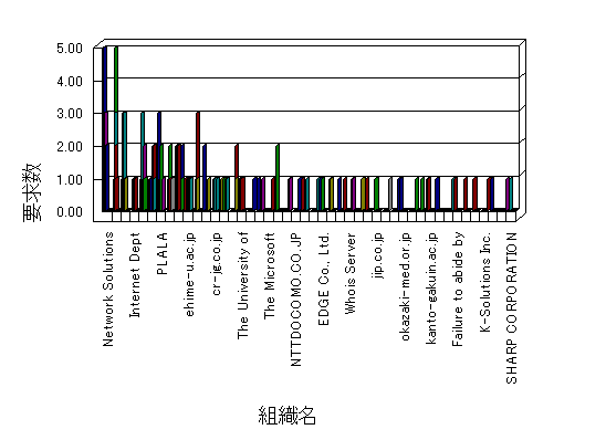 組織ユーザーにインターネット接続を提供する、商用または非営利団体、学術・行政機関などの、インターネット ドメイン で識別される団体や組織です。Microsoft Site Server Analysis は同じ組織に登録されたすべてのドメインを 1 つの組織としてグループ化します。ドメインがデータベースで使用できない場合は、1 つのインターネット ドメインが 1 つの組織を識別するのに使用されます。