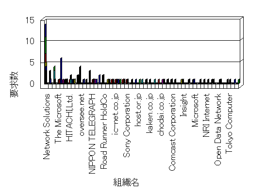 組織ユーザーにインターネット接続を提供する、商用または非営利団体、学術・行政機関などの、インターネット ドメイン で識別される団体や組織です。Microsoft Site Server Analysis は同じ組織に登録されたすべてのドメインを 1 つの組織としてグループ化します。ドメインがデータベースで使用できない場合は、1 つのインターネット ドメインが 1 つの組織を識別するのに使用されます。