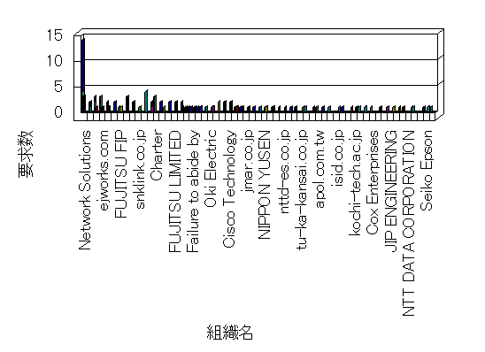 組織ユーザーにインターネット接続を提供する、商用または非営利団体、学術・行政機関などの、インターネット ドメイン で識別される団体や組織です。Microsoft Site Server Analysis は同じ組織に登録されたすべてのドメインを 1 つの組織としてグループ化します。ドメインがデータベースで使用できない場合は、1 つのインターネット ドメインが 1 つの組織を識別するのに使用されます。