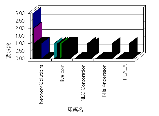 組織ユーザーにインターネット接続を提供する、商用または非営利団体、学術・行政機関などの、インターネット ドメイン で識別される団体や組織です。Microsoft Site Server Analysis は同じ組織に登録されたすべてのドメインを 1 つの組織としてグループ化します。ドメインがデータベースで使用できない場合は、1 つのインターネット ドメインが 1 つの組織を識別するのに使用されます。
