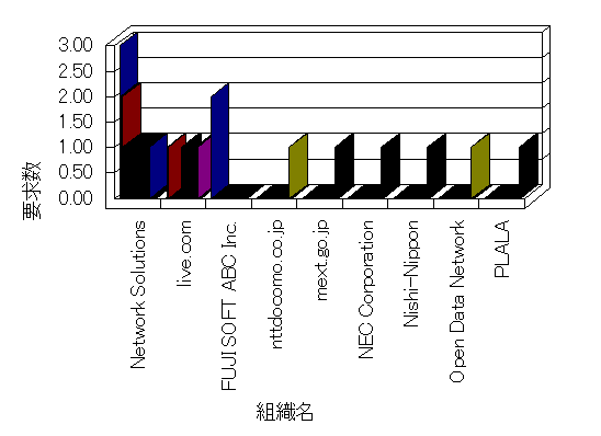 要求コンテンツの取得が正常に行われた任意のヒット です。ヒットと違って、要求はコンテンツとユーザーの挙動に関係しています。例えば、ユーザーがある HTML ページを要求して、そのページが 3 つのイメージを含む場合、Web サーバーは要求されたページの他に、そのページが含む 3 つのイメージ ファイル、およびいくつかの他の要素もログに付け加えるかもしれませんが、Analysis はこれらをあわせて 1 つのユーザーからの要求としてカウントします。