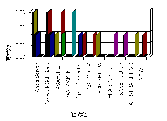 組織ユーザーにインターネット接続を提供する、商用または非営利団体、学術・行政機関などの、インターネット ドメイン で識別される団体や組織です。Microsoft Site Server Analysis は同じ組織に登録されたすべてのドメインを 1 つの組織としてグループ化します。ドメインがデータベースで使用できない場合は、1 つのインターネット ドメインが 1 つの組織を識別するのに使用されます。