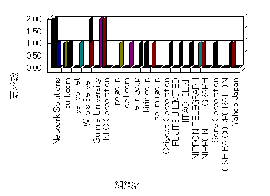 組織ユーザーにインターネット接続を提供する、商用または非営利団体、学術・行政機関などの、インターネット ドメイン で識別される団体や組織です。Microsoft Site Server Analysis は同じ組織に登録されたすべてのドメインを 1 つの組織としてグループ化します。ドメインがデータベースで使用できない場合は、1 つのインターネット ドメインが 1 つの組織を識別するのに使用されます。