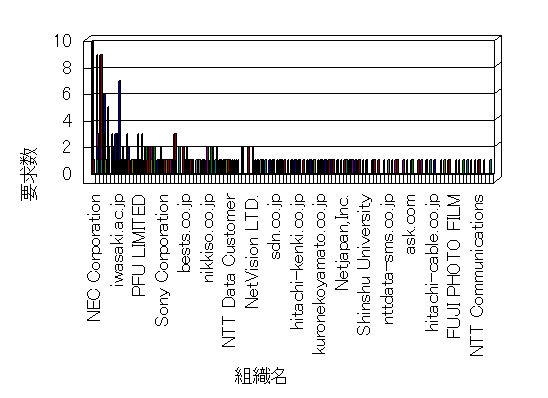 組織ユーザーにインターネット接続を提供する、商用または非営利団体、学術・行政機関などの、インターネット ドメイン で識別される団体や組織です。Microsoft Site Server Analysis は同じ組織に登録されたすべてのドメインを 1 つの組織としてグループ化します。ドメインがデータベースで使用できない場合は、1 つのインターネット ドメインが 1 つの組織を識別するのに使用されます。
