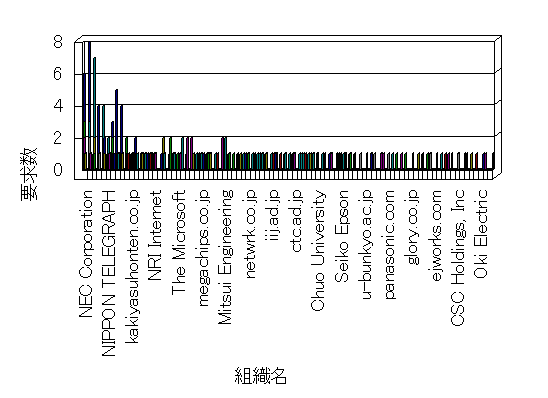 組織ユーザーにインターネット接続を提供する、商用または非営利団体、学術・行政機関などの、インターネット ドメイン で識別される団体や組織です。Microsoft Site Server Analysis は同じ組織に登録されたすべてのドメインを 1 つの組織としてグループ化します。ドメインがデータベースで使用できない場合は、1 つのインターネット ドメインが 1 つの組織を識別するのに使用されます。