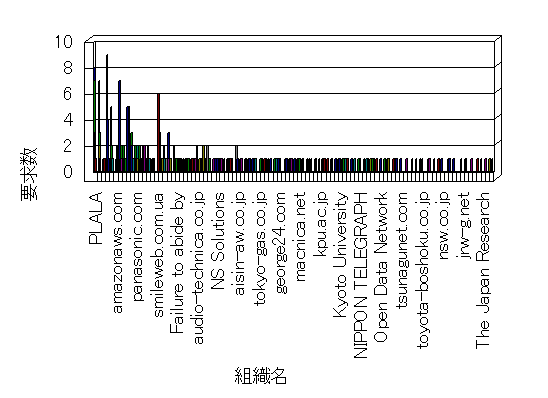 参照組織のサイトには、このサイトにリンクするページがあります。グラフでは、このサイトへのアクセス数に基づいた、上位 10 組織を示します。