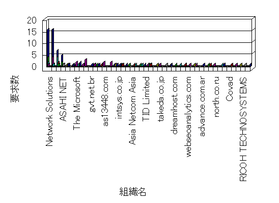 組織ユーザーにインターネット接続を提供する、商用または非営利団体、学術・行政機関などの、インターネット ドメイン で識別される団体や組織です。Microsoft Site Server Analysis は同じ組織に登録されたすべてのドメインを 1 つの組織としてグループ化します。ドメインがデータベースで使用できない場合は、1 つのインターネット ドメインが 1 つの組織を識別するのに使用されます。