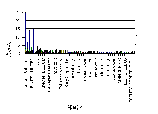 組織ユーザーにインターネット接続を提供する、商用または非営利団体、学術・行政機関などの、インターネット ドメイン で識別される団体や組織です。Microsoft Site Server Analysis は同じ組織に登録されたすべてのドメインを 1 つの組織としてグループ化します。ドメインがデータベースで使用できない場合は、1 つのインターネット ドメインが 1 つの組織を識別するのに使用されます。