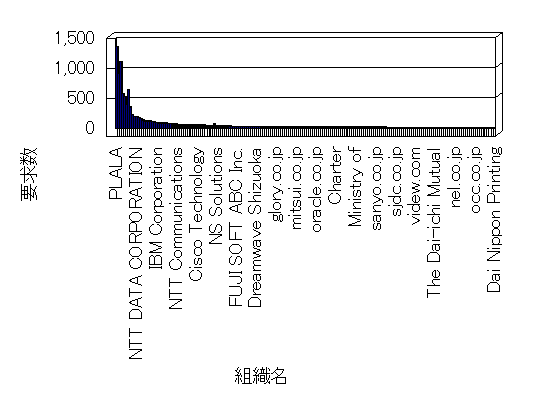組織ユーザーにインターネット接続を提供する、商用または非営利団体、学術・行政機関などの、インターネット ドメイン で識別される団体や組織です。Microsoft Site Server Analysis は同じ組織に登録されたすべてのドメインを 1 つの組織としてグループ化します。ドメインがデータベースで使用できない場合は、1 つのインターネット ドメインが 1 つの組織を識別するのに使用されます。