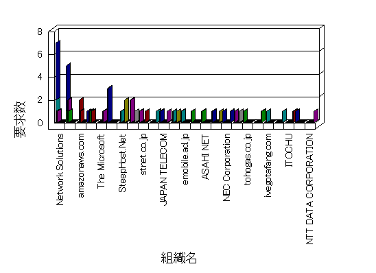 組織ユーザーにインターネット接続を提供する、商用または非営利団体、学術・行政機関などの、インターネット ドメイン で識別される団体や組織です。Microsoft Site Server Analysis は同じ組織に登録されたすべてのドメインを 1 つの組織としてグループ化します。ドメインがデータベースで使用できない場合は、1 つのインターネット ドメインが 1 つの組織を識別するのに使用されます。
