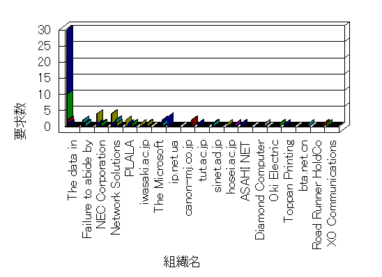 組織ユーザーにインターネット接続を提供する、商用または非営利団体、学術・行政機関などの、インターネット ドメイン で識別される団体や組織です。Microsoft Site Server Analysis は同じ組織に登録されたすべてのドメインを 1 つの組織としてグループ化します。ドメインがデータベースで使用できない場合は、1 つのインターネット ドメインが 1 つの組織を識別するのに使用されます。
