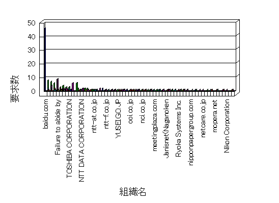 組織ユーザーにインターネット接続を提供する、商用または非営利団体、学術・行政機関などの、インターネット ドメイン で識別される団体や組織です。Microsoft Site Server Analysis は同じ組織に登録されたすべてのドメインを 1 つの組織としてグループ化します。ドメインがデータベースで使用できない場合は、1 つのインターネット ドメインが 1 つの組織を識別するのに使用されます。