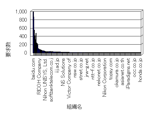 要求コンテンツの取得が正常に行われた任意のヒット です。ヒットと違って、要求はコンテンツとユーザーの挙動に関係しています。例えば、ユーザーがある HTML ページを要求して、そのページが 3 つのイメージを含む場合、Web サーバーは要求されたページの他に、そのページが含む 3 つのイメージ ファイル、およびいくつかの他の要素もログに付け加えるかもしれませんが、Analysis はこれらをあわせて 1 つのユーザーからの要求としてカウントします。