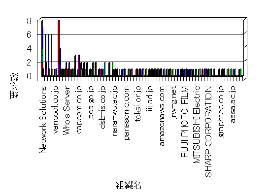 組織ユーザーにインターネット接続を提供する、商用または非営利団体、学術・行政機関などの、インターネット ドメイン で識別される団体や組織です。Microsoft Site Server Analysis は同じ組織に登録されたすべてのドメインを 1 つの組織としてグループ化します。ドメインがデータベースで使用できない場合は、1 つのインターネット ドメインが 1 つの組織を識別するのに使用されます。