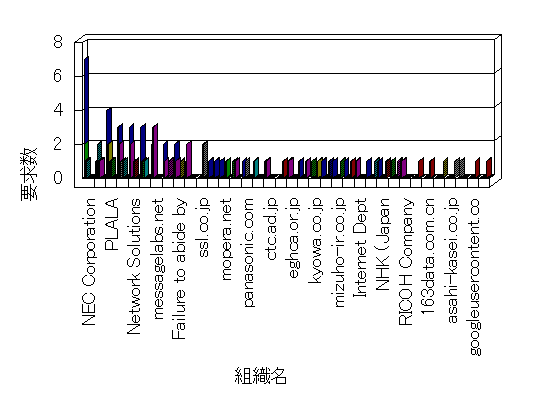 参照組織のサイトには、このサイトにリンクするページがあります。グラフでは、このサイトへのアクセス数に基づいた、上位 10 組織を示します。